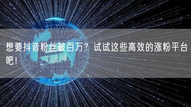 在抖音上实现粉丝破百万是许多内容创作者的梦想,但如何快速涨粉却是一个难题。除了优质内容,选择合适的涨粉平台和工具也能事半功倍。以下是几种高效的涨粉方法,助你快速达成目标!